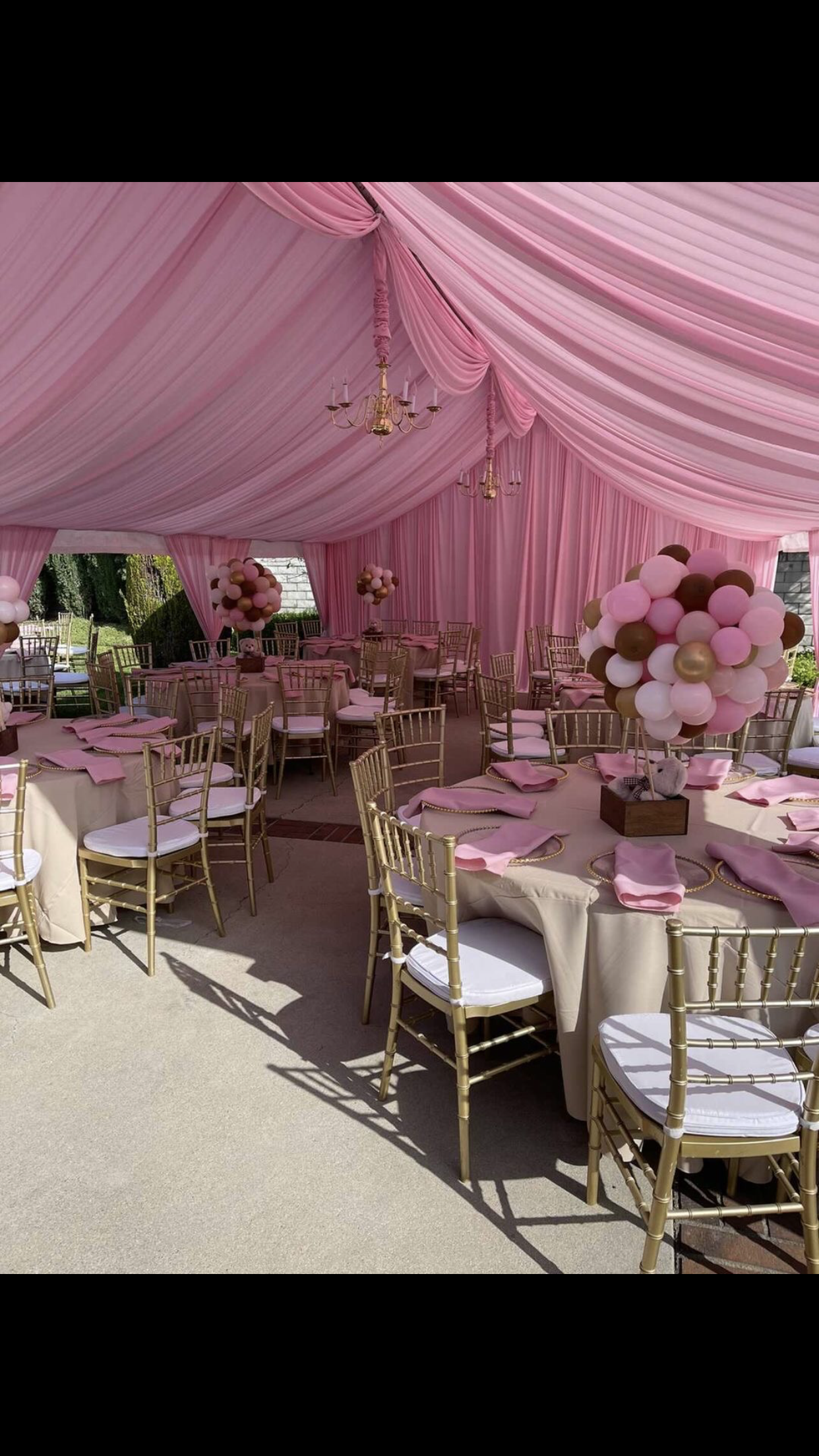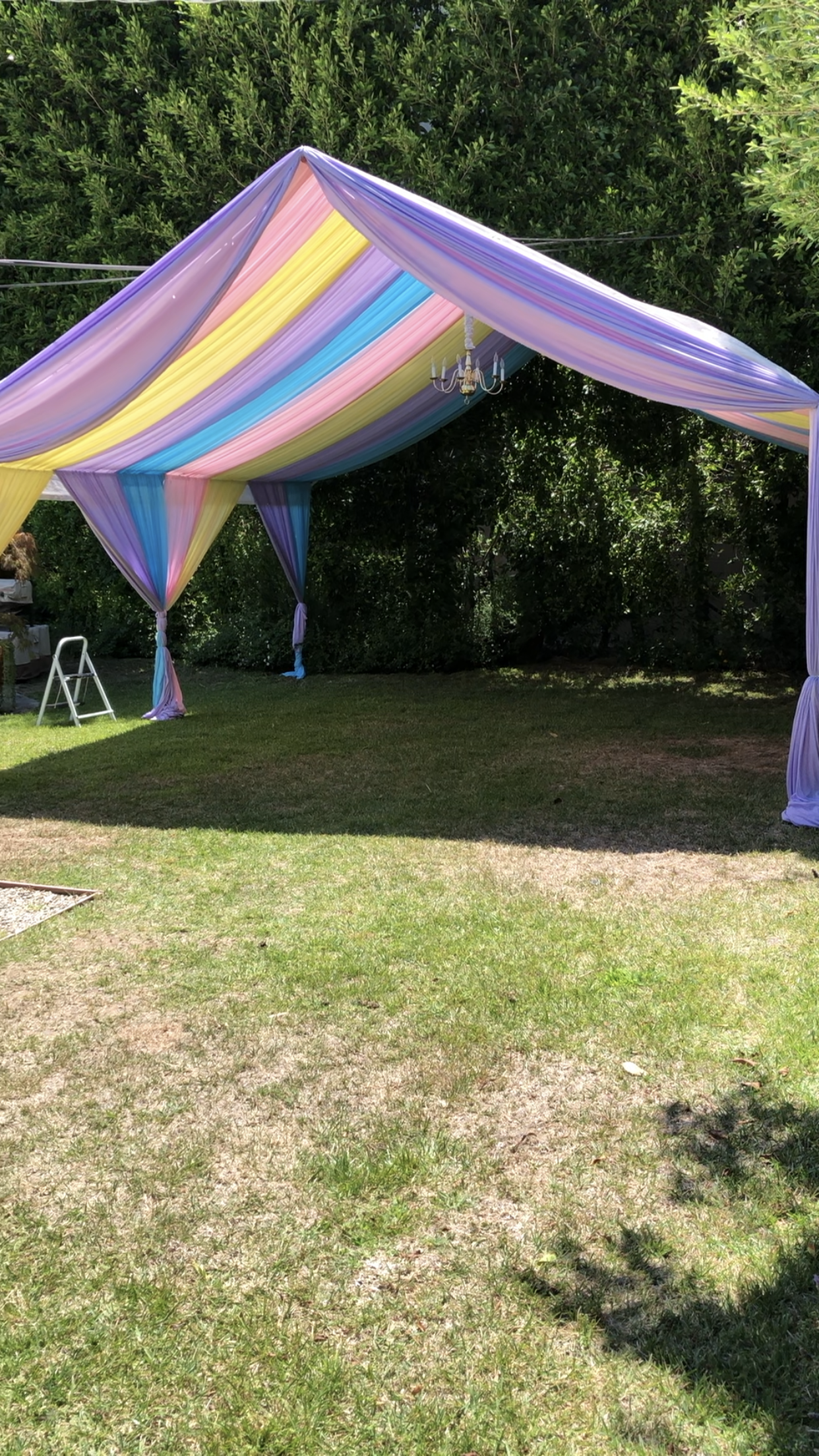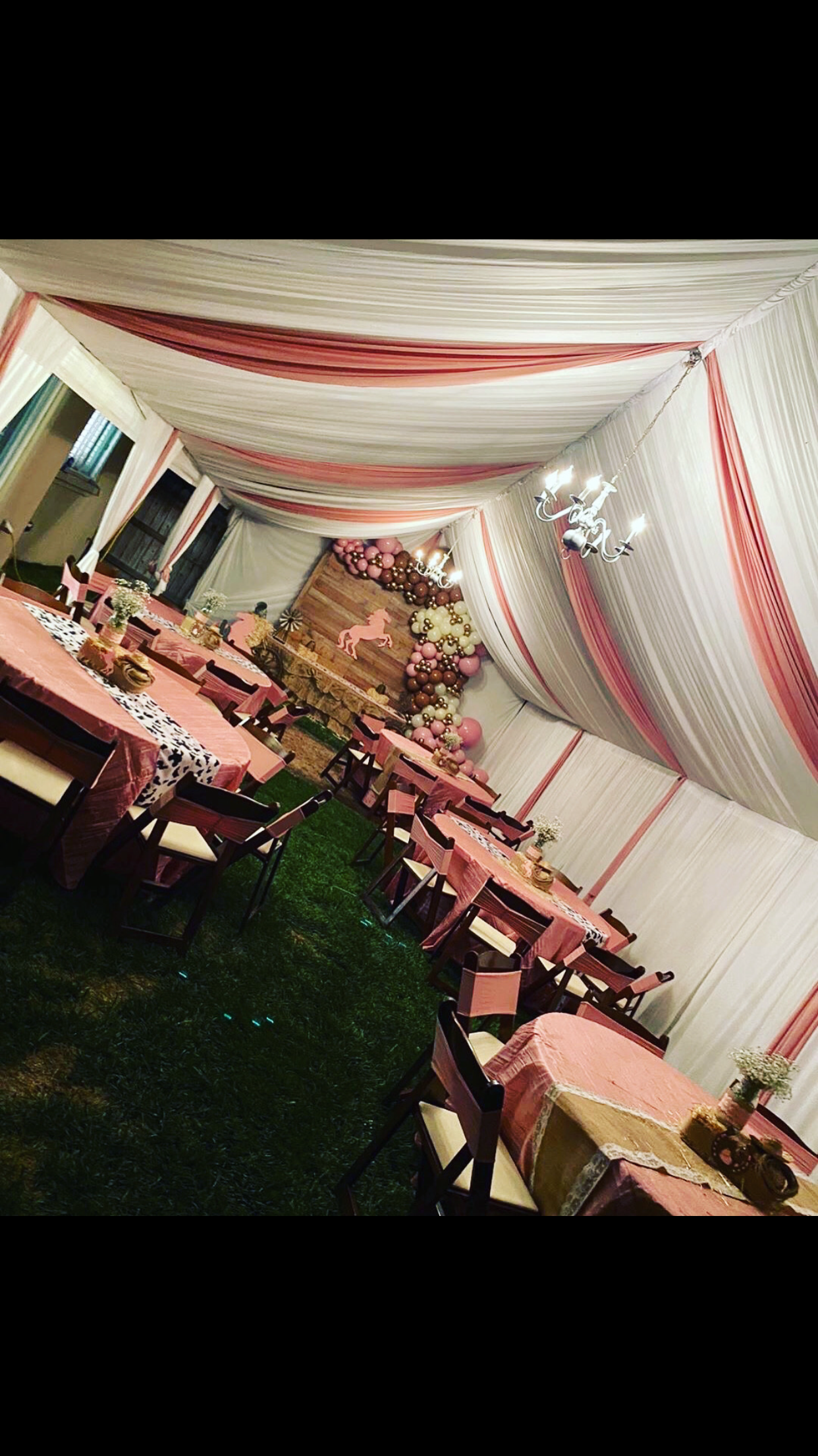 Introducing our stunning 10x20 tent with custom color drapery! This spacious tent is the ultimate party centerpiece, providing a shady and stylish space for all your guests. The custom color drapery is the icing on the cake, allowing you to match your decor and set the perfect tone for any occasion. From birthdays to baby showers, our tent is the ultimate outdoor gathering spot, rain or shine! It's party time, y'all!
