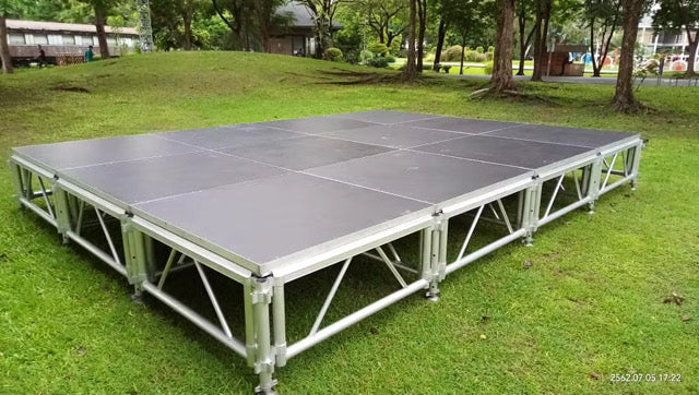 With a 24" elevated height, it commands attention, giving your guests a clear view of every moment. Built with all-terrain adjustable legs, this stage stands firm on uneven ground, while its weather-proof, anti-slip surface ensures performance and safety in all environments.