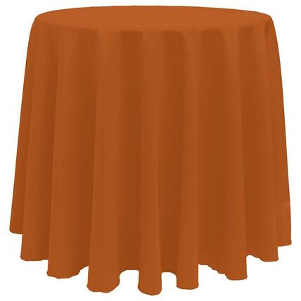 120” Burnt Orange Polyester Round Tablecloth