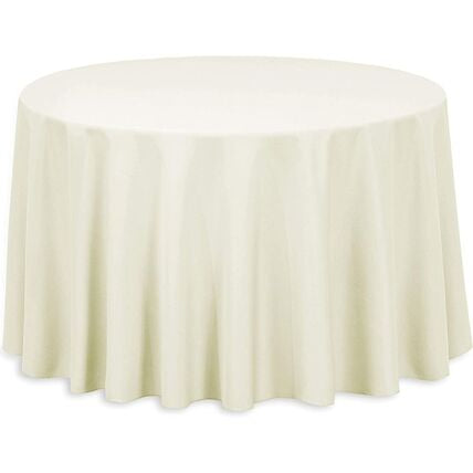Our versatile 120" round Ivory polyester tablecloths are the perfect addition to any event! Made from high-quality, durable polyester fabric, these tablecloths are ideal for weddings, banquets, and other special occasions. With a variety of colors to choose from, our tablecloths will add a touch of elegance to any table setting. Not only do they fit perfectly on 60" round tables, but they can also be used to stylishly cover 30" and 36" cocktail tables. Plus, they're stain-resistant and easy to clean, making them a practical choice for busy event planners. Make your next event unforgettable with our 120" round polyester tablecloths!