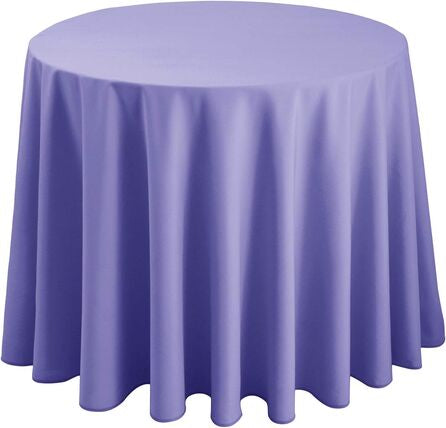 Our versatile 120" round Lavender polyester tablecloths are the perfect addition to any event! Made from high-quality, durable polyester fabric, these tablecloths are ideal for weddings, banquets, and other special occasions. With a variety of colors to choose from, our tablecloths will add a touch of elegance to any table setting. Not only do they fit perfectly on 60" round tables, but they can also be used to stylishly cover 30" and 36" cocktail tables. Plus, they're stain-resistant and easy to clean, making them a practical choice for busy event planners. Make your next event unforgettable with our 120" round polyester tablecloths!