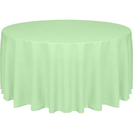 Our versatile 120" round Mint Green polyester tablecloths are the perfect addition to any event! Made from high-quality, durable polyester fabric, these tablecloths are ideal for weddings, banquets, and other special occasions. With a variety of colors to choose from, our tablecloths will add a touch of elegance to any table setting. Not only do they fit perfectly on 60" round tables, but they can also be used to stylishly cover 30" and 36" cocktail tables. Plus, they're stain-resistant and easy to clean, making them a practical choice for busy event planners. Make your next event unforgettable with our 120" round polyester tablecloths!
