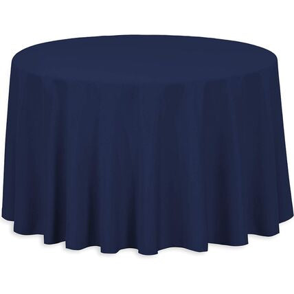 Our versatile 120" round Navy Blue polyester tablecloths are the perfect addition to any event! Made from high-quality, durable polyester fabric, these tablecloths are ideal for weddings, banquets, and other special occasions. With a variety of colors to choose from, our tablecloths will add a touch of elegance to any table setting. Not only do they fit perfectly on 60" round tables, but they can also be used to stylishly cover 30" and 36" cocktail tables. Plus, they're stain-resistant and easy to clean, making them a practical choice for busy event planners. Make your next event unforgettable with our 120" round polyester tablecloths!