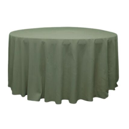 Our versatile 120" round Sage Green polyester tablecloths are the perfect addition to any event! Made from high-quality, durable polyester fabric, these tablecloths are ideal for weddings, banquets, and other special occasions. With a variety of colors to choose from, our tablecloths will add a touch of elegance to any table setting. Not only do they fit perfectly on 60" round tables, but they can also be used to stylishly cover 30" and 36" cocktail tables. Plus, they're stain-resistant and easy to clean, making them a practical choice for busy event planners. Make your next event unforgettable with our 120" round polyester tablecloths!
