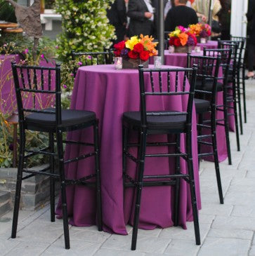 Add a touch of elegance to your event with our sleek black Chiavari barstool rentals in Los Angeles. These sophisticated barstools are perfect for weddings, corporate events, and social gatherings, providing both comfort and style for your guests.